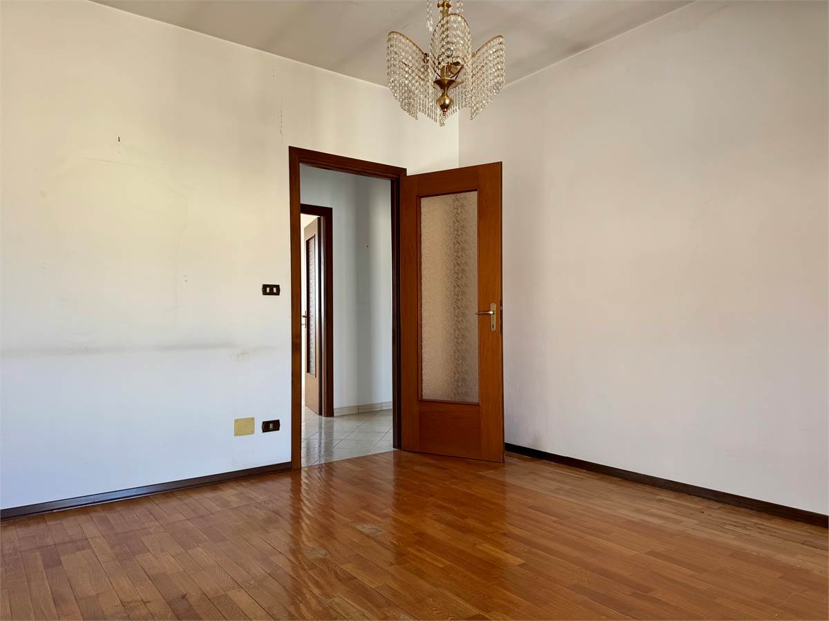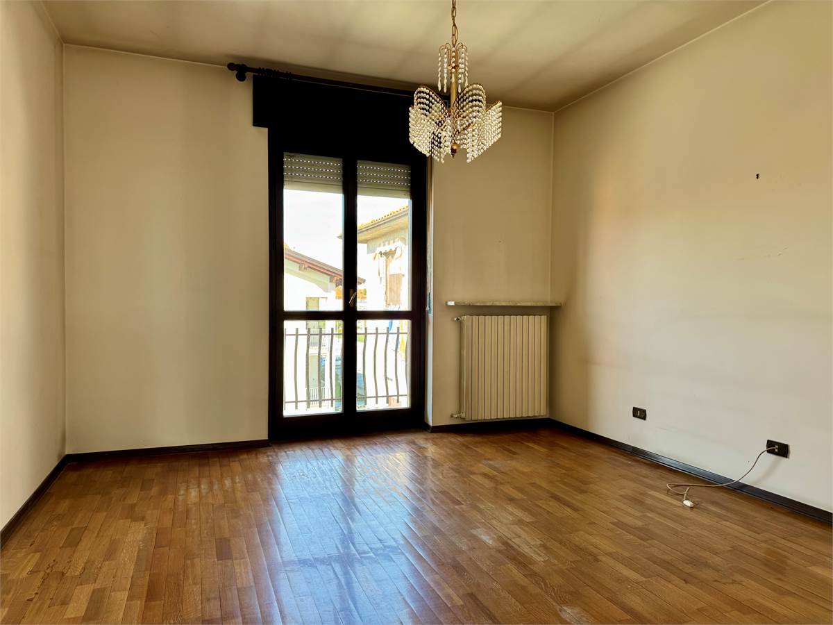 In via Giovanni XXIII 7, al secondo ed ultimo piano, composto di: ingresso, cucina abitabile, 2 camere da letto, bagno, 2 balconi, ripostiglio, oltre a cantina e box auto.